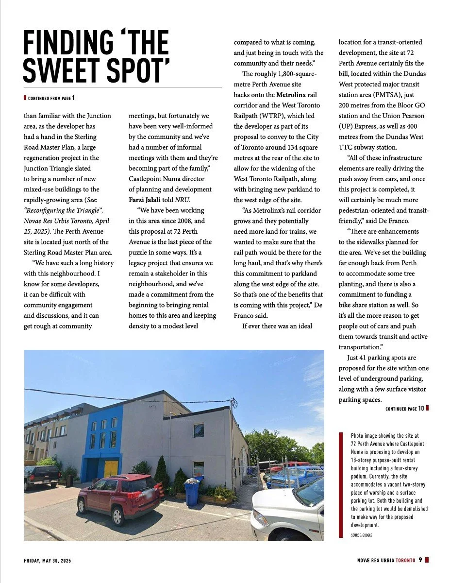 Sajecki Planning is pleased to be featured in NRU Publishing Inc. for our work on Castlepoint Numa’s 72 Perth Avenue development.
